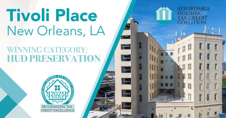 Tivoli Place in New Orleans, Louisiana won the 2025 Recognition of Housing Tax Credit Excellence in the HUD Preservation category.